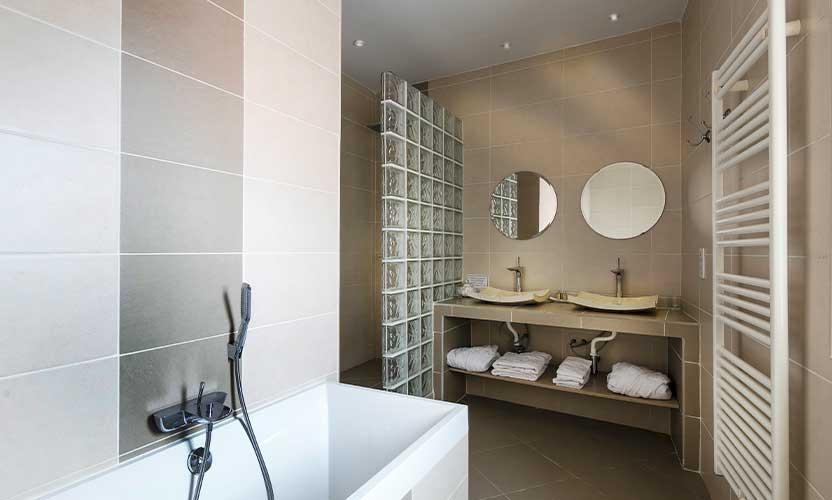 * starting atThis typical farmhouse displays its beauties, admirably renovated and preserved, it offers a chic and modern decoration, a true haven of peace with its enclosed garden, outdoor swimming pool and jacuzzi, out of sight. The wellness area with its sauna, balneotherapy and massages awaits you to spend an extraordinary moment of softness (On reservation and at an additional cost).