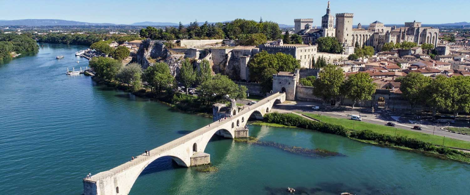 * starting atOur campsite is situated in the heart of a wooded and flowering park on Barthelasse Island in Avignon, with a spectacular view of the Avignon Bridge and the Popes' Palace. You can reach the city centre directly thanks to a free river ferry that leaves from the campsite.