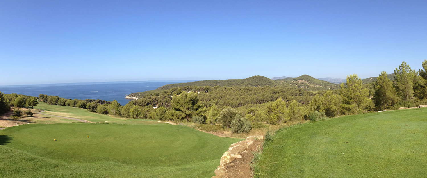 Dessiné par l'architecte Ronald Fream et niché au coeur des vignes et pins de Provence, le golf offre une vue imprenable sur la Mer Méditerranée. Depuis le départ, son fairway plonge vers la Grande Bleue, dévoilant à l'horizon les stations balnéaires alentours. Agrémenté de cascades, longs bunkers et autres greens à plateaux, ce golf au relief vallonné est une expérience inoubliable pour tous les joueurs.