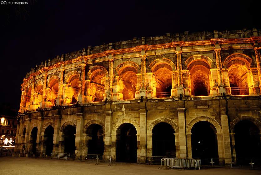 Symbole de la notoriété d'une ville, l'amphithéâtre attirait une foule très nombreuse. Celui de Nîmes, avec celui d'Arles et le Collisée de Rome, l'un des mieux conservés du monde antique. Après avoir servi de cadre aux jeux romains, ces lieux accueillent aujourd'hui les corridas pendant la féria.