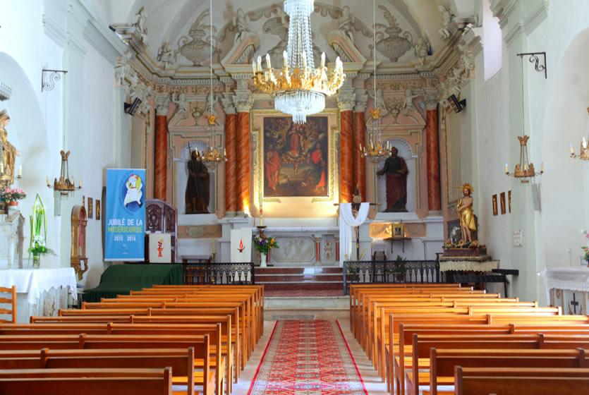 Les édifice religieux ne manquent pas. Sur la grande place au centre du village, vous pouvez voir l'église paroissiale Saint Jean-Baptiste de 1666 avec son clocher de 1670. Attenante, la chapelle de Saint-Bernardin (ancienne chapelle des Pénitents Blancs) présente un beau retable de 1652. A l'extrémité ouest du village, il y a la Chapelle Saint-Jean-Baptiste de 1753. Spacieuse avec son abside et sa voûte en plein cintre, elle accueille diverses manifestations culturelles, fêtes et expositions. En sortant du village, vous trouverez la Chapelle Notre Dame des Baous du XVe, dans son petit jardin avec fontaine, et la Chapelle Sainte-Petronille qui daterait du XIIe.